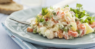 Preparo salada russa de olhos fechados e desde que minha mãe me ensinou, há uns 30 anos atrás. Antes disso eu já ficava na cozinha ajudando, ela me deixava picar as cenouras.